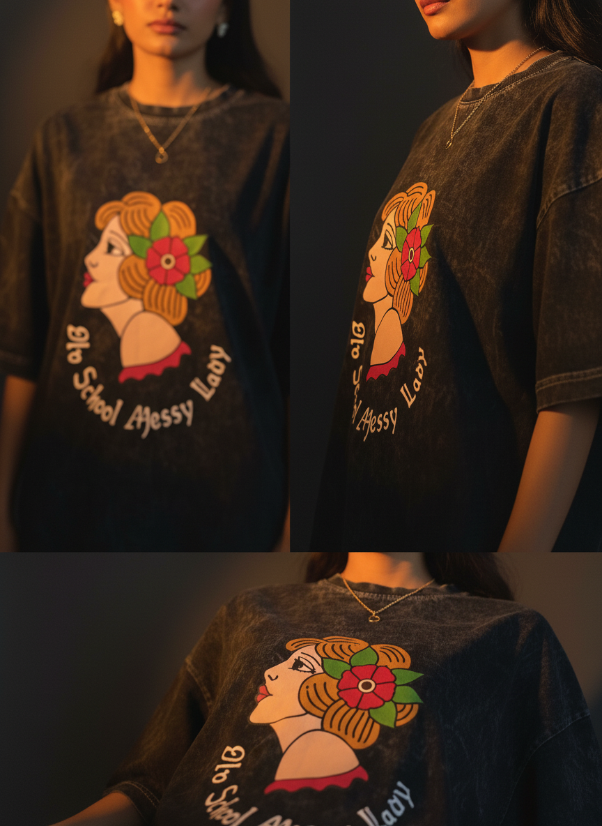 Stamped with the Old School Messy Lady, this piece marks the moment your style goes from casual to legendary.